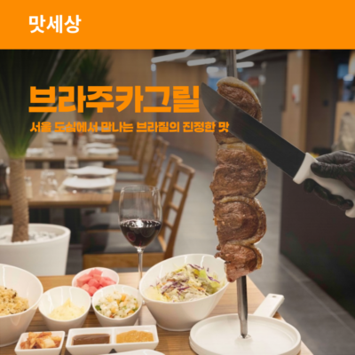 서울 시청역 근처, 번잡한 도심 한복판에 있는 이 브라질 레스토랑은 마치 고향에 돌아온 듯한 느낌을 준다. 문을 열고 들어서는 순간, 익숙한 숯불 향과 고소한 고기 냄새가 코끝을 스치며 식욕을 돋운다. 주방에서는 반가운 브라질인 셰프가 긴 쇠꼬챙이에 고기를 꿰어 능숙하게 돌리고, 테이블 사이를 오가며 직접 잘라주는 모습은 보기만 해도 즐겁다.