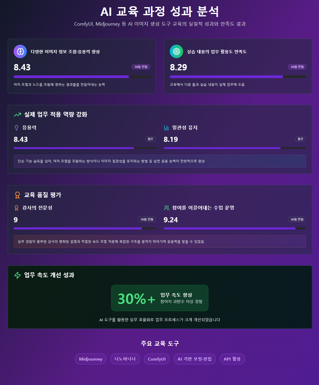 숫자가 증명하는 성장: 응용력 8.43점, 속도 30% 향상