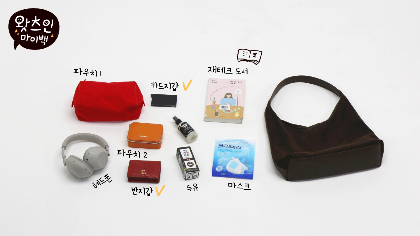 첫 번째 가방의 주인은 고객서비스실에서 일하고 있는 두 명의 구성원이다. 하나는 바리바리 풀소유, 다른 하나는 깔끔한 미니멀. 가방 스타일은 정반대지만, 비슷한 나이대에 2026년 결혼을 준비 중인 예비신부라는 달콤한 공통점을 가지고 있다. 업무적 접점은 많지 않지만, 회사 안에서 찐 우정을 키워가고 있는 CS팀 듀오다. 달라서 더 잘 맞는 두 사람의 출근 가방과 그 안에 담긴 진솔한 직무 이야기를 지금 공개한다.