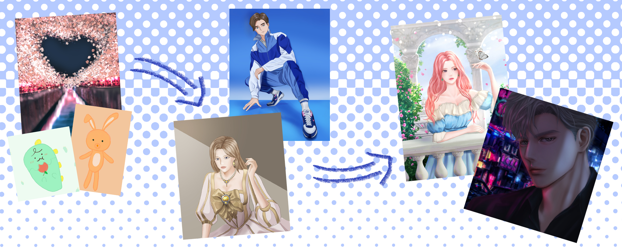 기자의 경우 웹소설 표지 스타일의 반실사 인물 일러스트를 잘 그리고 싶어 초기에는 완전 모작과 포즈 모작부터 시작했고, 이후 창작 일러스트로 확장해 연습했다.