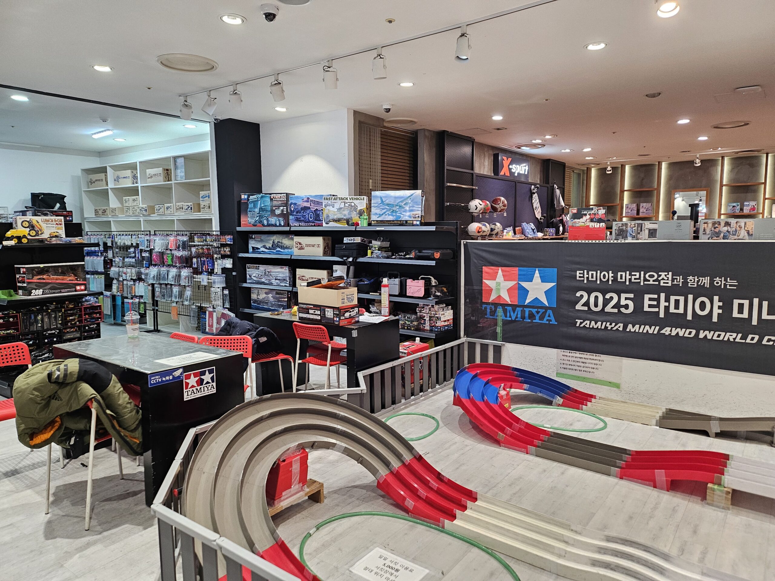 지난 1월 중순, 퇴근 후 가산 마리오타워 타미야 매장으로 향했다. 매장에 도착하자마자 화려한 미니카 라인업과 정교한 조립 도구들이 시선을 사로잡았다. 특히 눈길을 끈 것은 2025년 월드 챌린지 한국 예선이 열렸던 거대하고 정교한 전용 트랙이었다.