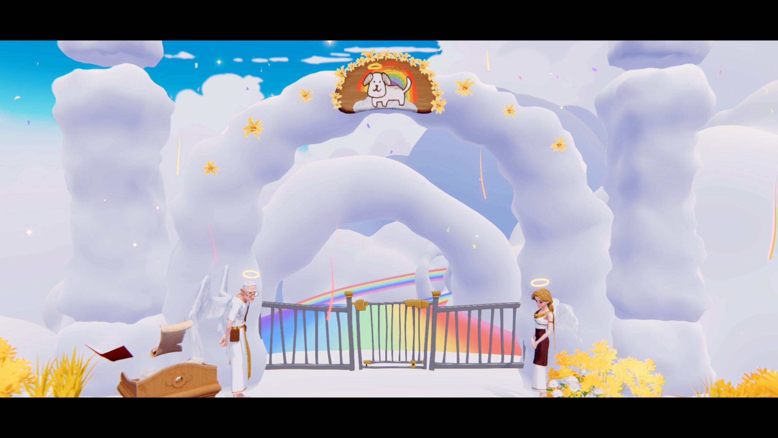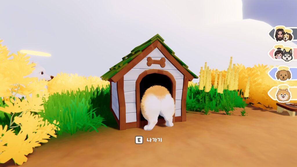 캐릭터 디자이너의 시선으로 보았을 때, 천사장 할아버지와 천사들, 인간 캐릭터까지 각자의 개성이 또렷하게 드러난다는 점이 특히 인상적이다. 다른 강아지들과 주인들의 사연이 자연스럽게 궁금해지는 디자인 덕분에 캐릭터에 더욱 몰입하게 된다. 게임 곳곳에는 강아지 관련 까메오도 등장한다. 우리에게 친숙한 ‘존 윅’을 연상시키는 캐릭터를 만나는 재미도 숨어 있어, 이를 찾아보는 것도 하나의 즐거움이다.