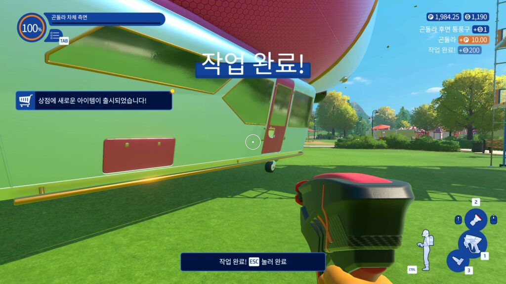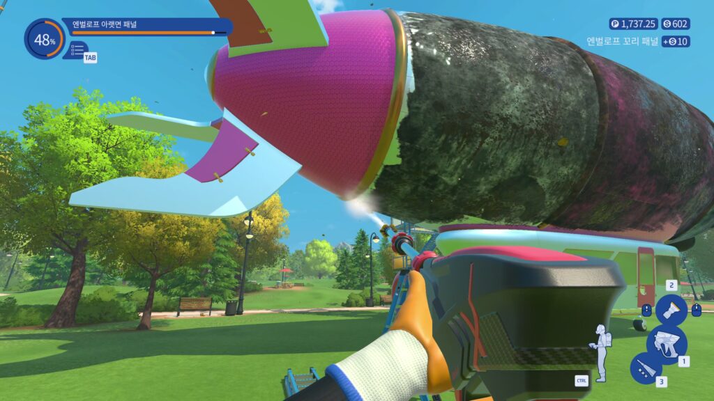 전작을 오래 플레이한 유저라면 누구나 공감할 고충이 있다. 99%까지 청소를 마쳤는데, 마지막 1%의 미세한 티끌이 어디 숨어 있는지 도무지 찾을 수 없어 맵을 무작정 헤매던 경험이다. 2편은 그 오래된 불만을 말끔히 해결했다. 부위별 청소 진행률을 실시간으로 확인하고, 미청소 구역의 위치를 직관적인 인터페이스로 짚어주는 시스템이 도입된 것이다. 마지막 티끌 하나를 찾느라 허탈하게 시간을 날리던 불편함은 시원하게 씻겨 나갔다.