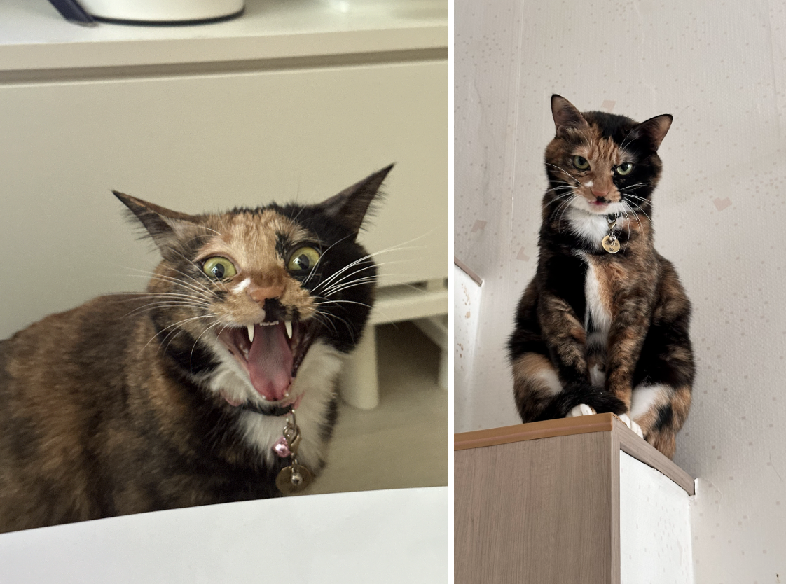 샬감은 여자에게는 사랑스럽고 다정하지만, 이상하게도 남자는 극도로 경계해요. 저희 아버지가 한국에 오셨을 때도 샬감은 “이 집엔 남자는 필요 없어!”라는 듯이 강하게 반응했던 웃픈 에피소드가 생각나네요. 아 그리고 샬감은 폰 카메라를 켜기만 하면 하악질을 한답니다. 귀신같이 카메라를 알더라고요. 역시 천재냥이에요! 제 삶에 함께하는 작은 친구이자, 집의 중심이고, 영혼 같은 존재. 약간은 까칠하지만, 많이 사랑스럽고, 무엇보다도 독보적인 샬감! 벌써 보고 싶네요.