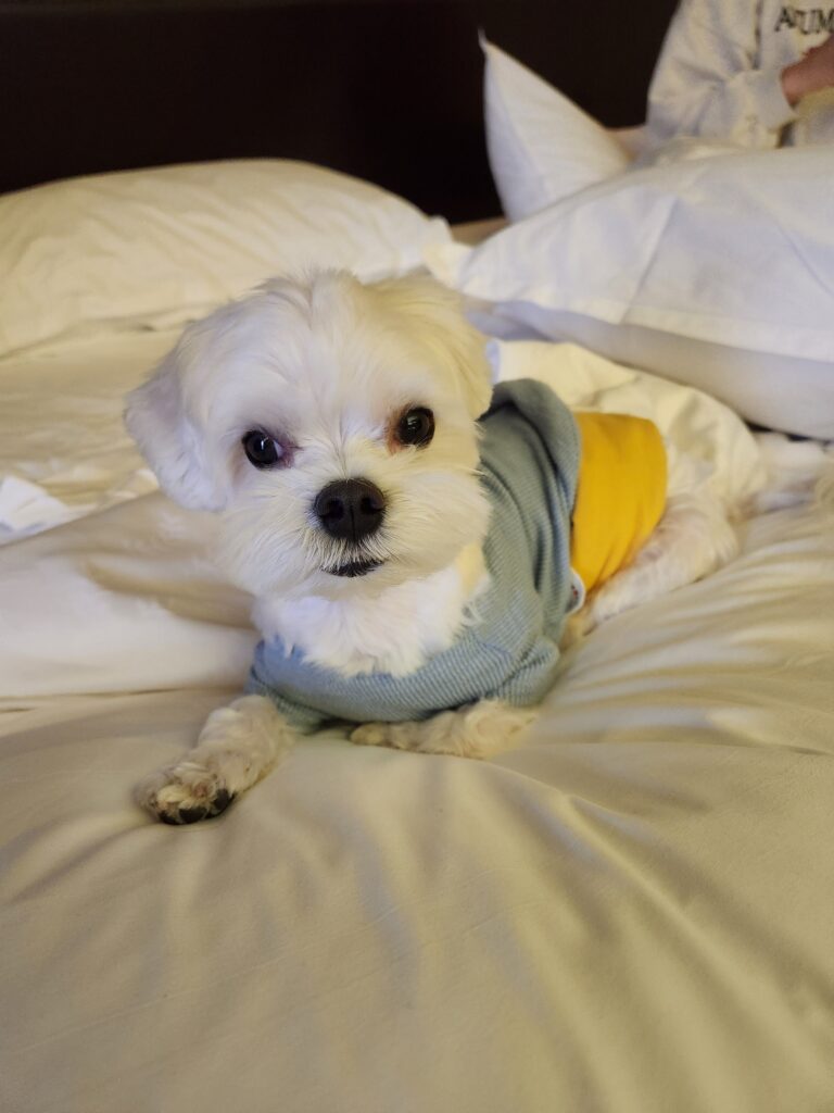 사실 벤지는 옷 입는 걸 싫어하지만 1년에 한 번 소노펫에 갈 때마다 한 벌씩 사 줍니다. 옷 입기 싫다고 시무룩한 것 좀 보세요… 그래도 너무 귀여운걸 어떡해요!