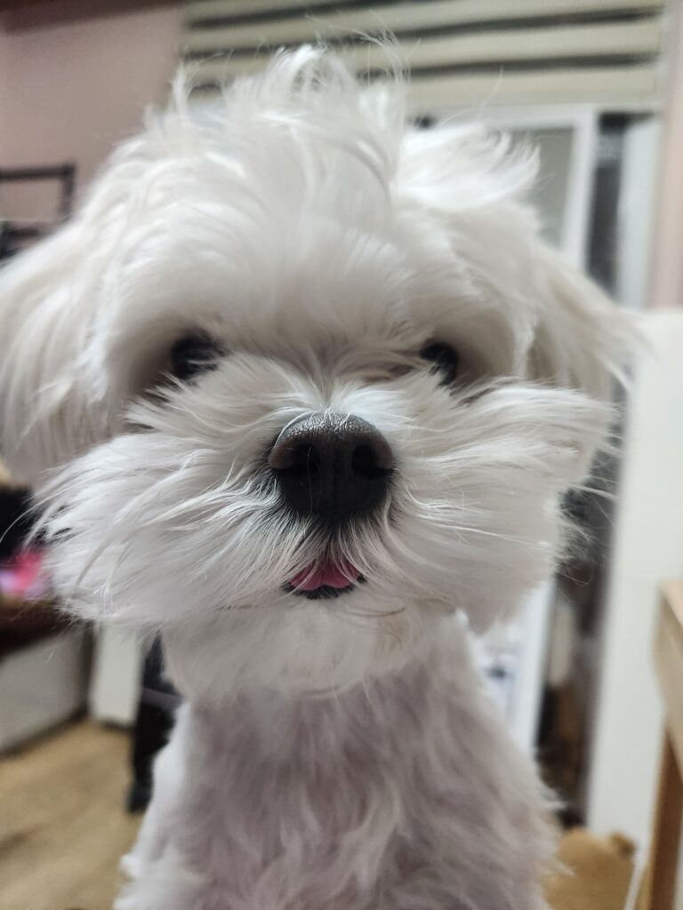쑥떡이: 저희 뚜뚜는 호캉스를 사랑하는 까칠한 말티즈랍니다. 입맛이 까다롭고 고집도 세지만 귀여움으로 다 용서받는 아이죠. 늘 약간의 뚱한 표정과 귀여운 척하고 싶을 때만 살짝 혀를 내밀고, 잦은 갸우뚱이 시그니처랍니다. 특기는 어디서든 바닥에 비비기~ 뚜뚜는 털 찌고 꼬순내 날 때 최고로 귀여워요!