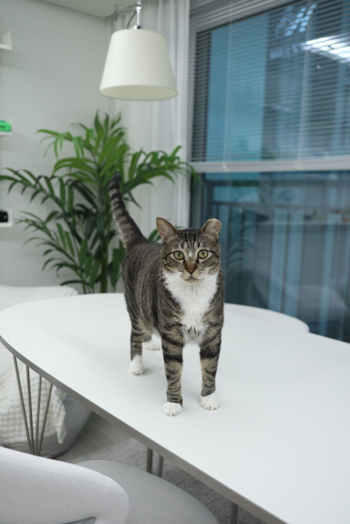 오묘: 다섯 냥이를 반려하다 한 아이를 잘 보내고 네 마리가 되었다가, 최근 길냥아가를 임시보호 하면서 다시 다섯냥이 집사가 된 오묘입니다. 매우 건강하고 친화적인 코숏 웅이 입양 홍보 겸 참여하게 됐습니다.