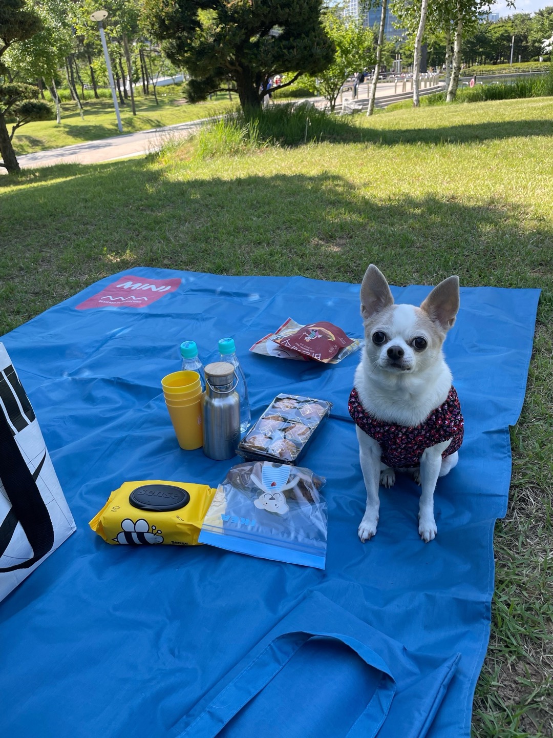 치와와 꾸미: 꾸미는 치와와지만 순함 80%, 치와와 본능 20% 정도 같아요. 졸린 눈, 쫑긋한 귀, 살짝 내민 혀가 너무나 귀엽고 사랑스러운 아이랍니다. 꾸미는 건조기에서 막 꺼낸 따뜻하고 보송한 빨래 속에 파고들어 찜질하는 것을 가장 좋아해요. 친절한 성향인데, 산책 중 만나는 강아지에겐 나름의 호불호가 있답니다. 본인처럼 작은 아이보다 크고 잘생긴 강아지에 호기심이 많은 것 같아요 ㅎㅎ 꾸미가 제 겨드랑이 사이에 껴서 자는 시간, 저만의 행복과 치유의 순간이랍니다.