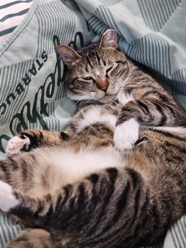 사진은 웅이를 처음 만난 날 목욕과 드라이까지 끝내고 찍은 모습이에요. 길냥이 같은 느낌은 전혀 없고, 호기심 많고 사람에게 호감도 가득한 표정이었죠. 특히 꼬리를 자주 꼿꼿하게 들고 다니는 걸 보면, 사람을 참 좋아한다는 게 느껴진답니다. 그리고 적응을 마친 현재, 배를 까고 상석에서 주무신답니다 ㅎㅎ 많관부!