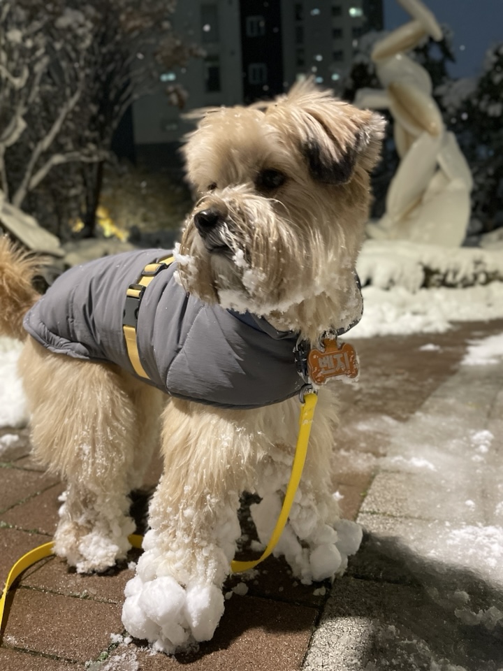 개빠: 입양 초반에는 소심해서 사람이 다가가면 도망가기 바빴는데, 지금은 새로운 사람에게 냄새를 맡고 간식도 받는 사교적인 강아지가 됐답니다. 미용실에서는 간식 달라고 투정도 하고요. 예전엔 소심해서 표현을 못 하는 줄 알았는데, 이제는 귀찮을 정도로 애정 표현이 많아져 행복합니다. 겨울엔 발에서 ‘눈감자’를 캐고 흙밭에서는 ‘모래견’이 됩니다. 표정만 봐도 보이죠. 벤지의 깨발랄한 모습들이!! ㅎㅎ