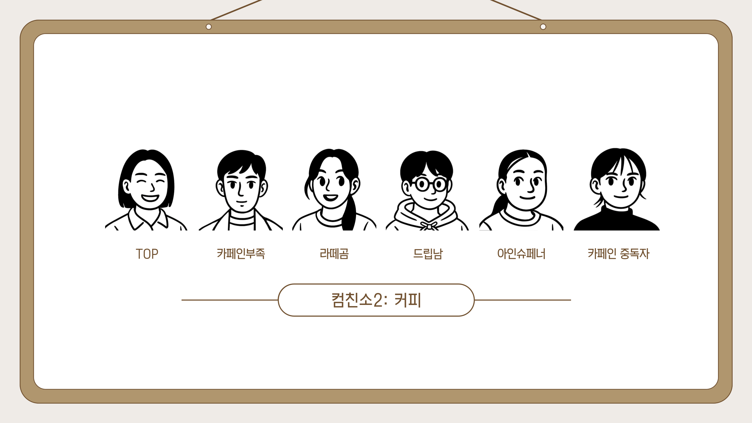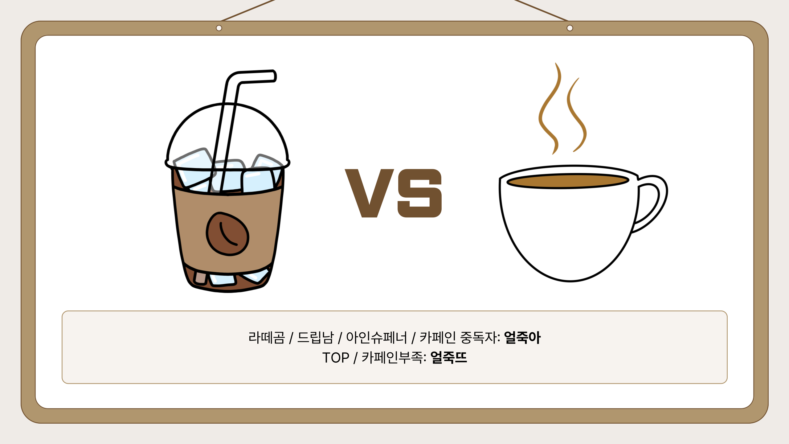 라떼곰 / 드립남 / 아인슈페너 / 카페인 중독자: 🧊🧊🧊