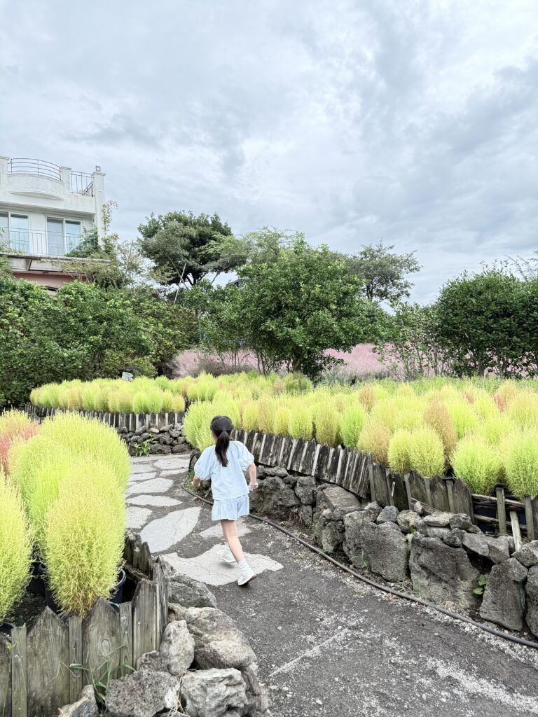 주요 정보: 산방산 전망과 핑크뮬리 정원이 있는 감성 카페. 정원 산책 코스와 포토존 운영.