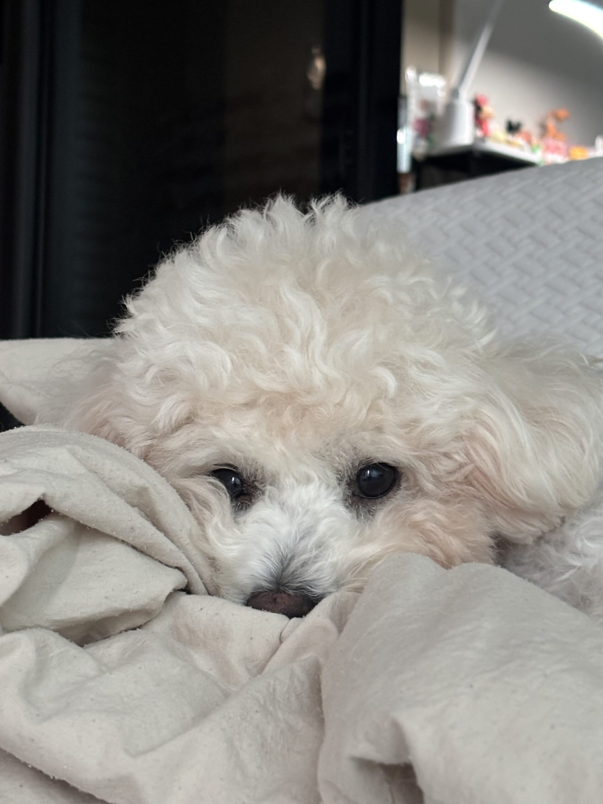 Cherry는 졸린 표정이 특히 인상적인 아이예요. 사람을 정말 좋아하고, 마치 사람처럼 행동해요. 조용한 편이라 거의 짖지 않지만, TV에 다른 강아지가 나오면 꼭 짖곤 한답니다. 아직은 어린 나이지만 성격은 아주 느긋하고 쿨해요.