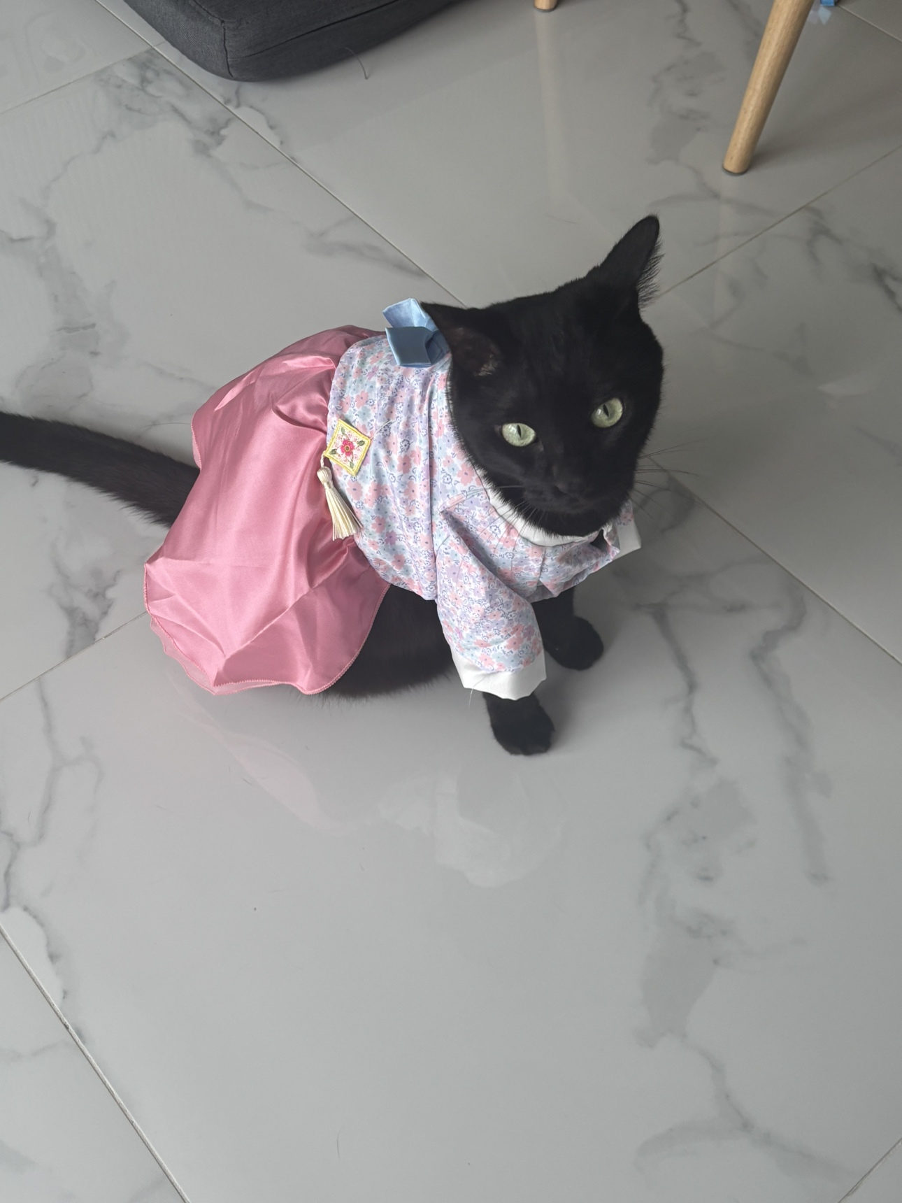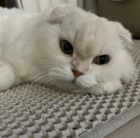 양이는 눈 모양이 마치 “11시 11분” 같은 인상적인 고양이에요. 미용을 잘못하면 눈꽃빙수 컷이 되어버리는 귀여운 단점도 있죠. 제가 게임을 오래 하면 등 뒤에 와서 꾸짖듯 울고 가기도 해요. 두 발로 서는 걸 잘하고, ‘간식’, ‘안돼’ 같은 말을 알아들을 정도로 똑똑하답니다.