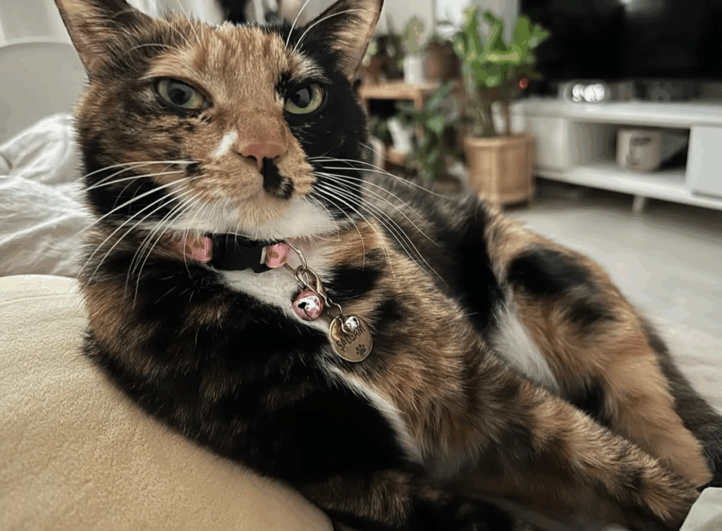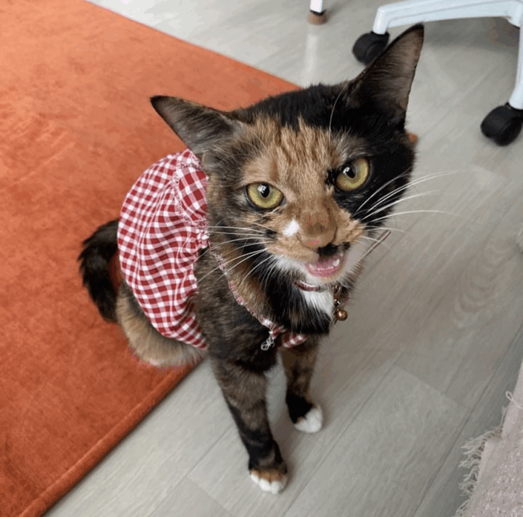 삼색 고양이라 털 무늬가 아주 매력적이에요. 통통하면서도 당당한 모습이 특징이고, 눈빛에서는 영리함과 장난기가 가득 느껴져요. 현재는 6.33kg의 건강한 공주님으로 자라났답니다.