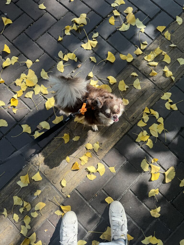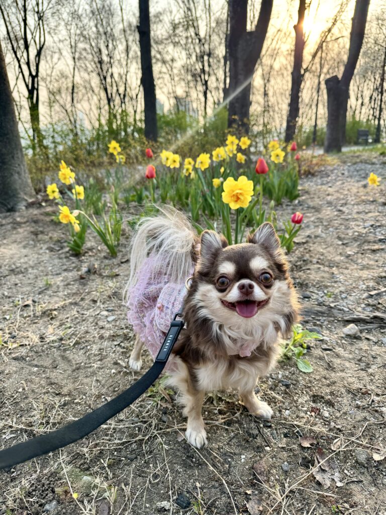 오리는 눈썹이 크고 초콜릿색 털이 풍성해서 산책할 때마다 “무슨 종이에요?”라는 질문을 자주 받아요. “치와와예요.”라고 하면 믿기지 않는다는 반응이 돌아오죠. 😆
