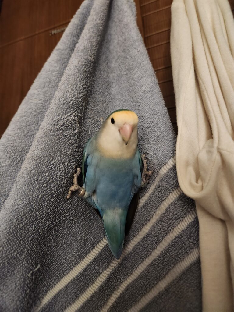 또 한 마리는 모란앵무 ‘여름’이에요. 몸의 파란색이 여름 하늘 같고, 머리의 주황빛은 여름 일몰 같아서 그렇게 이름을 지었어요. 수명은 7~12년 정도이고 지금은 2살이에요. 여름이를 입양하게 된 건 조금 특별한 사연이 있어요. 이전에 비슷하게 생긴 ‘릴리’라는 아이를 키우다가 사고로 떠나보냈거든요. 😢 그 후 앵무새 카페에 갔다가 릴리를 꼭 닮은 여름이를 만나게 되었어요. 처음부터 이상하게 친근해서 인연이라 느꼈죠.