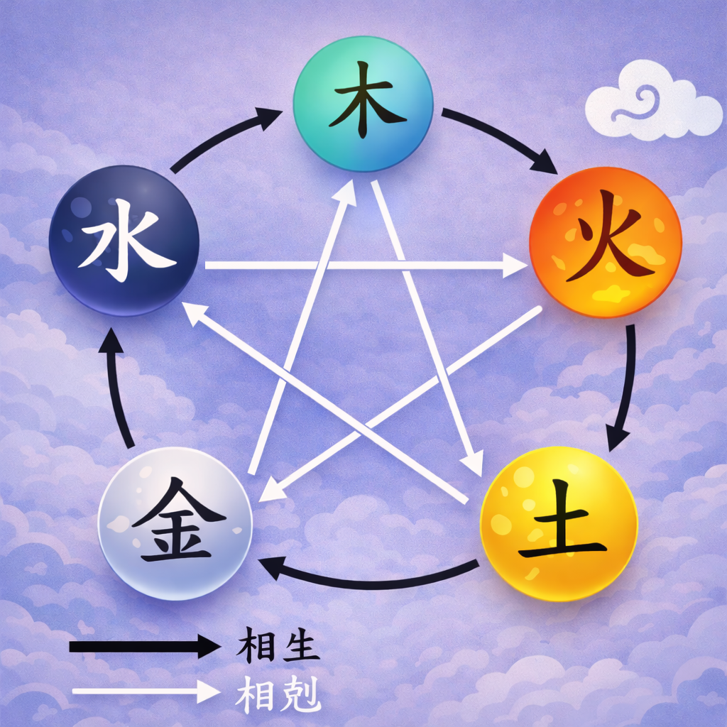 사주 명리학의 음양오행 (ai 제작 이미지)