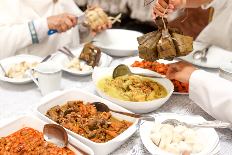 크투팟(인도네시아): 르바란 하면 Ketupat(코코넛 나뭇잎에 싼 찐밥), Opor Ayam(코코넛 밀크 치킨 스튜), Rendang(향신료와 코코넛 밀크로 오래 졸여낸 소고기 요리) 같은 명절 음식과, Kue Nastar(파인애플 타르트 쿠키), Kue Kastengel(치즈 쿠키) 같은 명절 간식들이 빠질 수 없죠! 이때 평소보다 훨씬 푸짐하게 차려져서 살이 찔 수밖에 없어요.