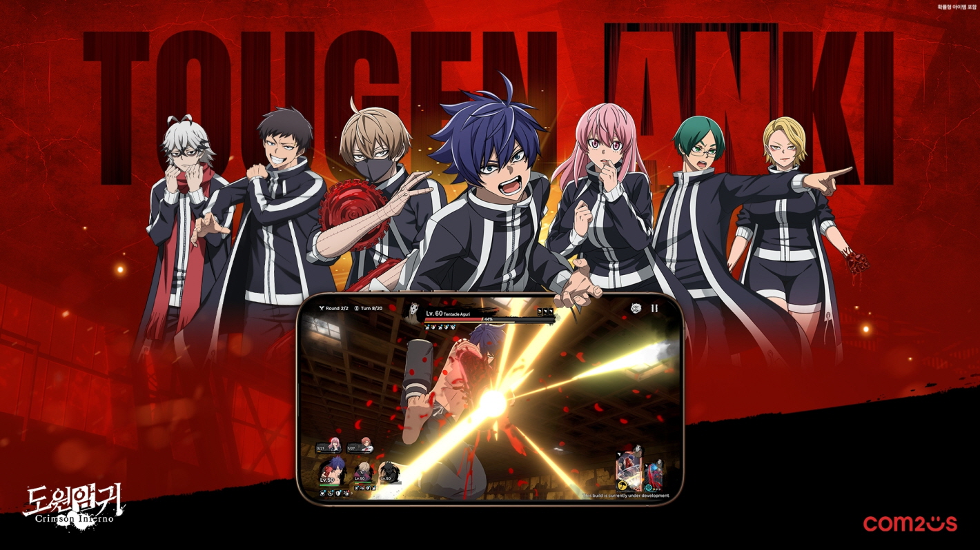 ‘도원암귀 Crimson Inferno’는 TV 애니메이션 ‘도원암귀’를 기반으로 컴투스가 개발 중인 RPG로, 모바일과 PC 플랫폼에서 모두 즐길 수 있도록 준비하고 있다. TV 애니메이션의 개성 넘치는 캐릭터와 깊이 있는 스토리를 생동감 있게 담으면서, 각 캐릭터의 개성을 살린 액션과 전투를 3D 그래픽과 연출로 구현해 몰입감 높은 플레이 재미를 제공할 계획이다.