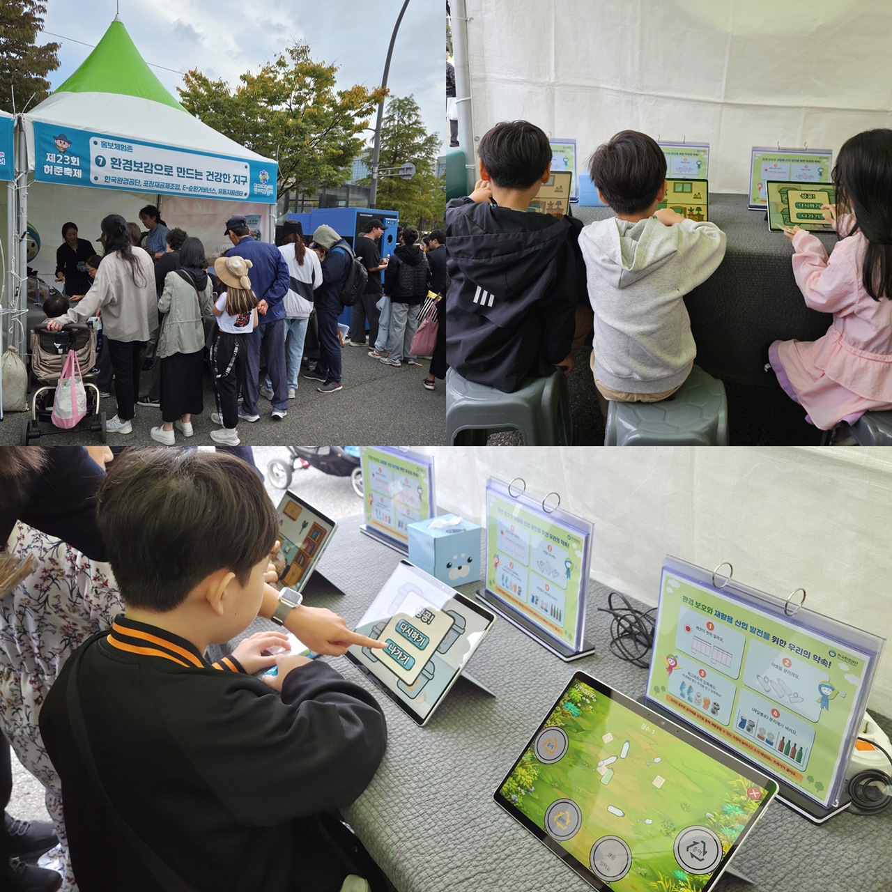 ▲ 컴투스 개발 교육용 게임 체험 모습(한국환경공단 수도권서부환경본부 부스 현장)