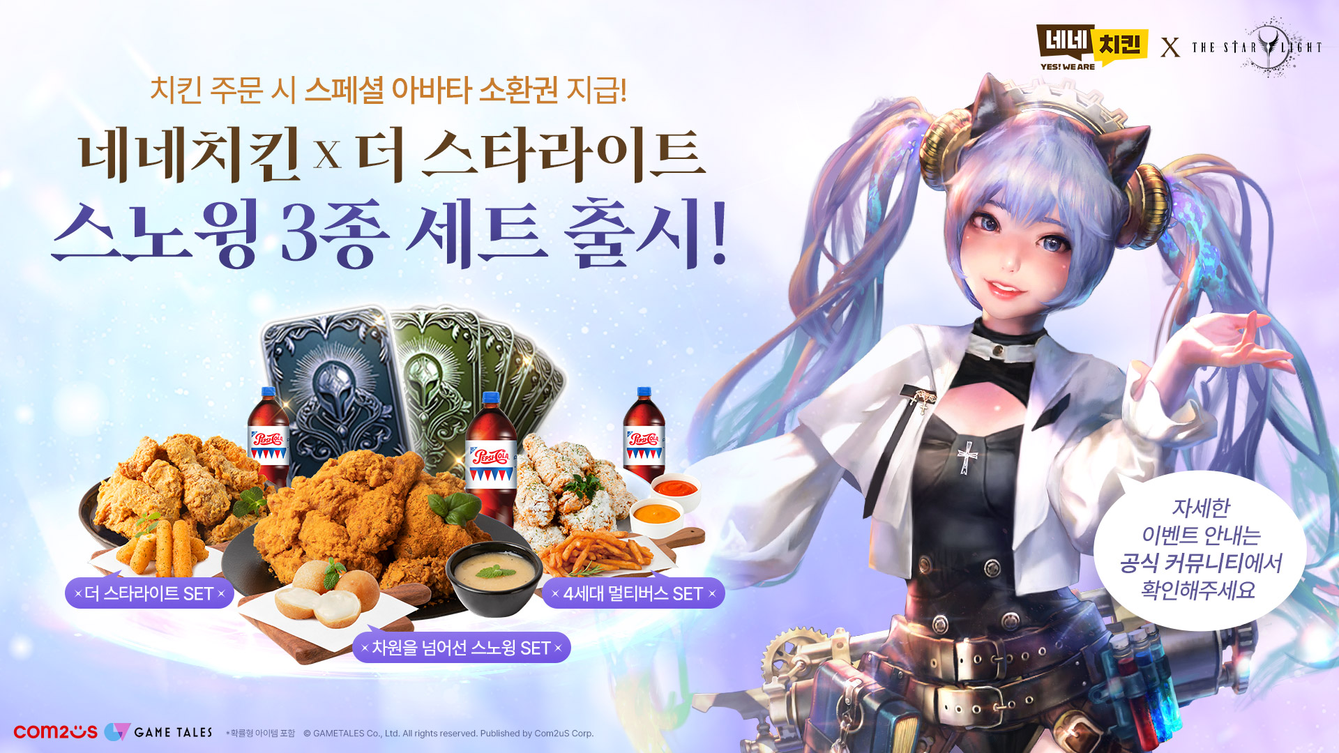 – 컴투스 ‘더 스타라이트’ 11월 4일까지 컬래버 진행, 신메뉴·특별 할인 코드·아이템 쿠폰 등 혜택 제공 – 컬래버 전용 세트 메뉴 3종 출시, 주문 시 ‘더 스타라이트’ 장패드 증정 이벤트 응모 가능 – 네네치킨 홈페이지·앱 주문시 게임 쿠폰 지급, 선착순 30만 명 치킨 특별 할인 코드 제공 컴투스(대표 남재관)는 게임테일즈(대표 정성환)가 개발하고 자사가 퍼블리싱하는 MMORPG ‘더 […]