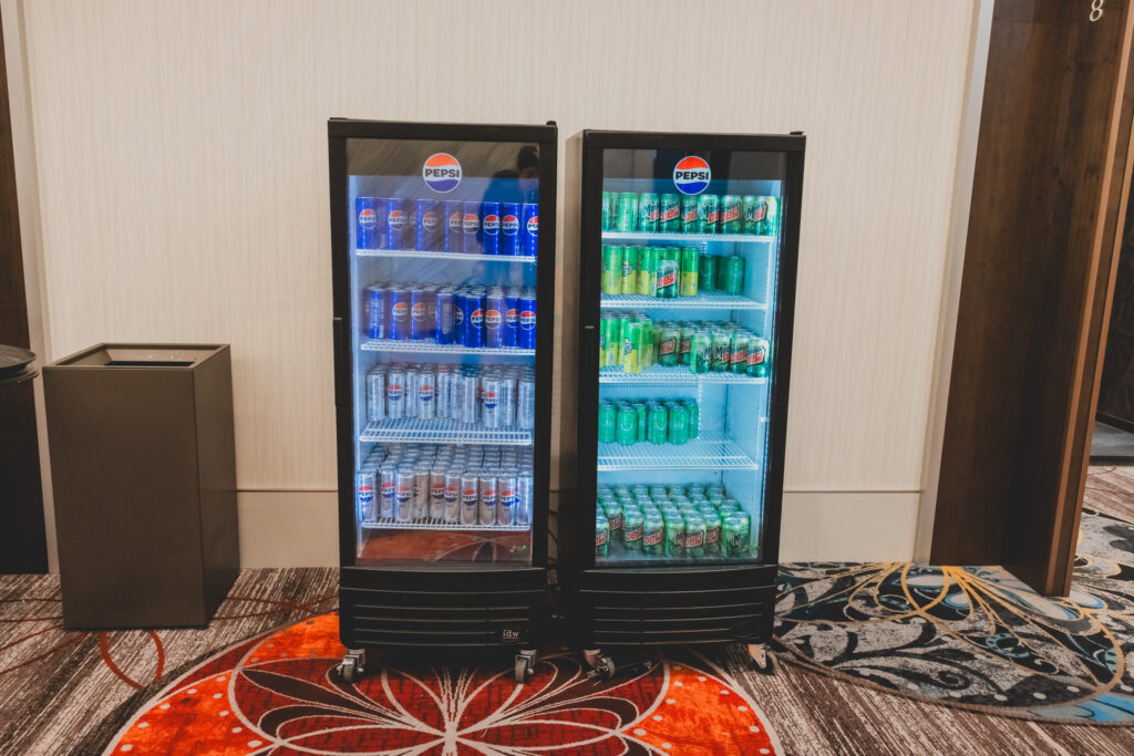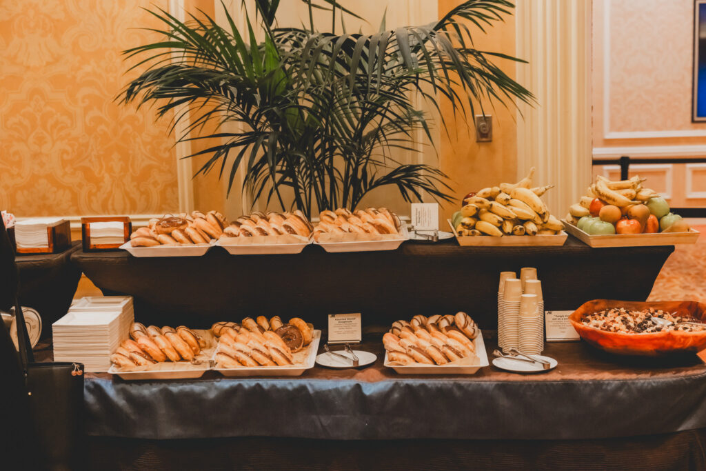 호텔에 마련된 공간에서 식사를 할 수 있는데, 빵을 비롯한 간단한 먹거리가 제공된다. 행사장 곳곳에 음식이 진열되어 있어 언제든 먹을 수 있었다. 냉장고에서 탄산음료를 마음껏 꺼내 마실 수 있었다.